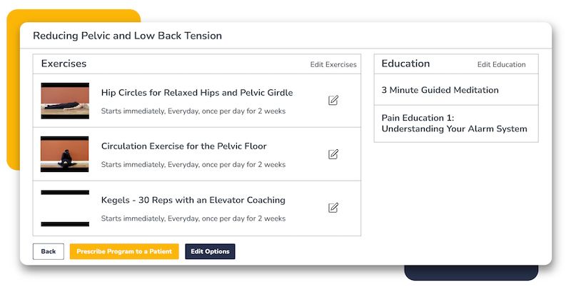 Prescribe personalized home programs, including exercise videos and educational handouts, to guide patients between appointments. Available for practitioners and patients on both web and mobile apps (Apple and Android).